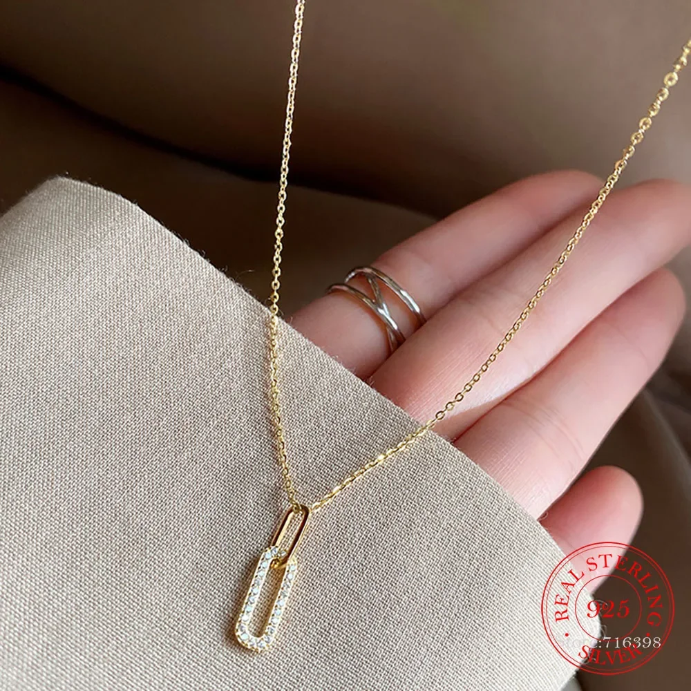 Collana girocollo con ciondolo geometrico in vero argento sterling 925 con cristalli per donna, collana placcata in oro 14K, regalo per feste di nozze